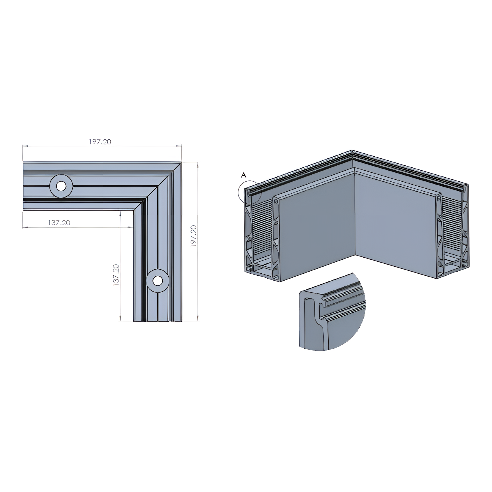 - Schenkellänge: 197 × 197 mm