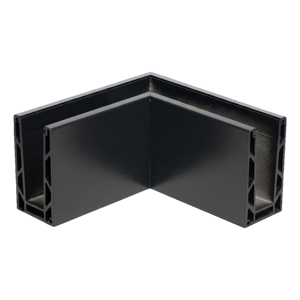 Das U-Eckprofil 90° Kozza KE 100 ist ein Element des Vollglasgeländersystems zur Ausbildung von Innenecken. Von oben im flachen System montiert, führt es Glasscheiben in zwei senkrechten Richtungen und gewährleistet Kanalsteifigkeit und Stabilität der gesamten Geländerkante. Dank des breiten Glasstärkenbereichs (12–21,52 mm) ermöglicht es eine flexible Anpassung der Scheibendicke an Projektanforderungen — von Standardverglasungen bis hin zu verstärkten Akustikpaketen.