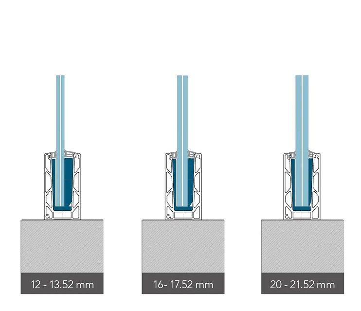 Das Profil KE 100 unterstützt drei Glasdickenbereiche, was universelle Anwendung gewährleistet: