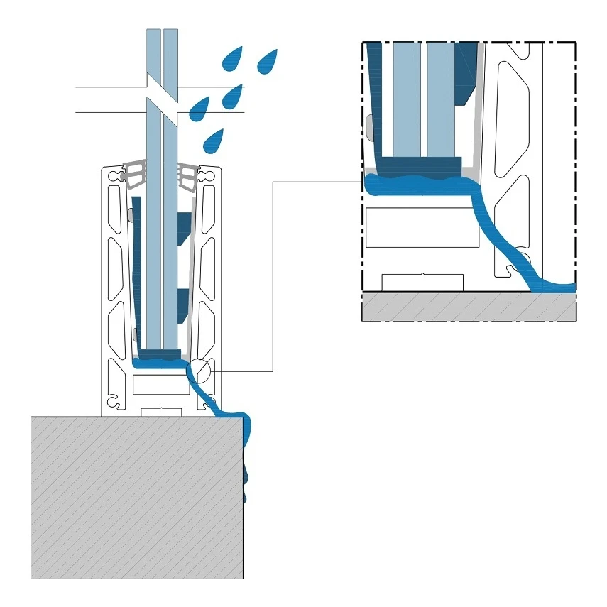 Ein Schlüsselmerkmal des KF 1000 Profils ist das integrierte Entwässerungssystem. Regenwasser, das in das Profilinnere gelangt, wird effektiv nach außen geleitet – dies eliminiert Probleme mit stehendem Wasser, Fleckenbildung und beschleunigter Korrosion. Diese Lösung verlängert die Lebensdauer des gesamten Geländers erheblich und reduziert den Wartungsaufwand, was besonders bei Projekten mit Witterungsexposition entscheidend ist.