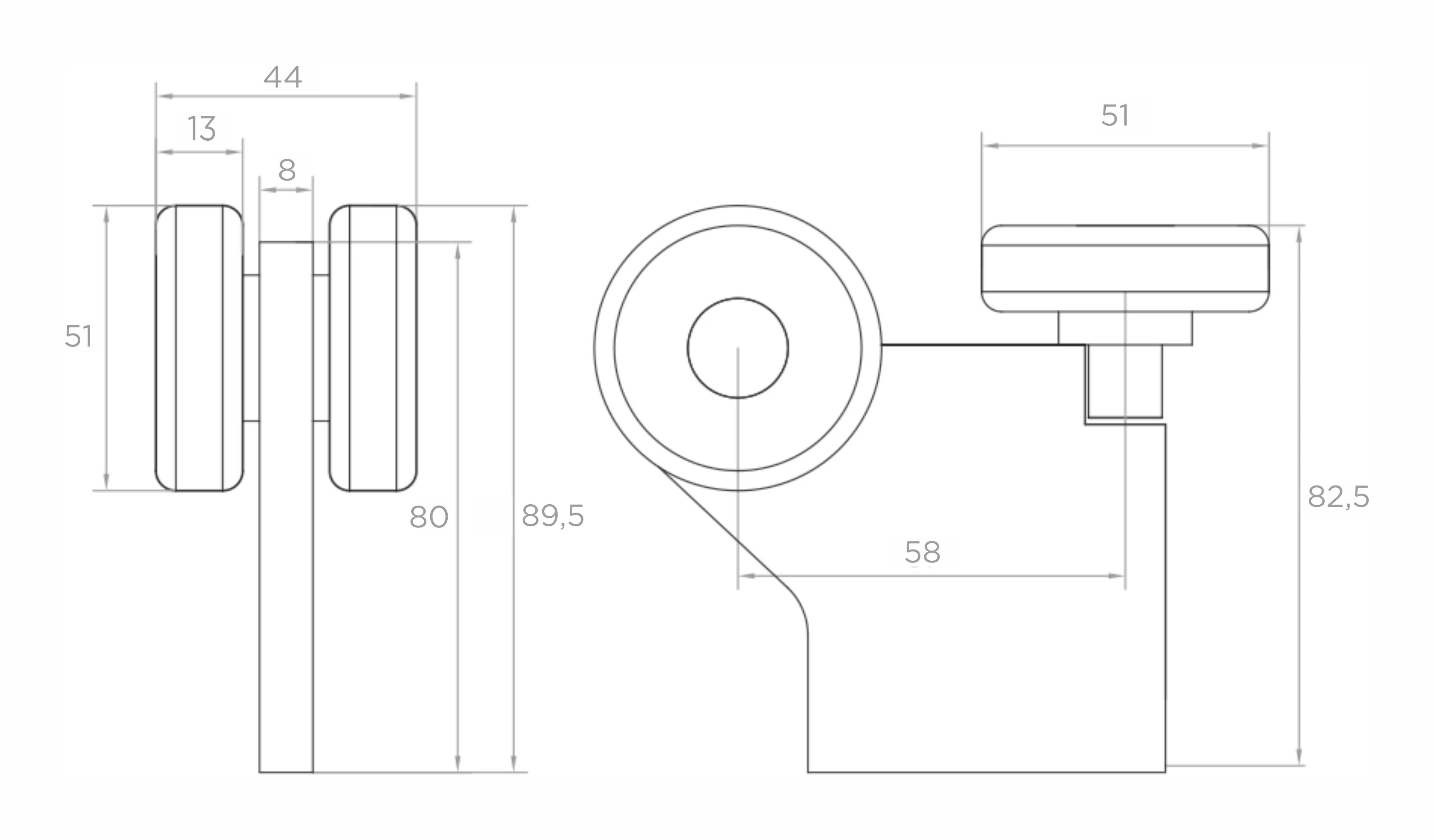 - Tragrollen (Stahl): 2 Stk. – Durchmesser 51 mm, Breite 13 mm