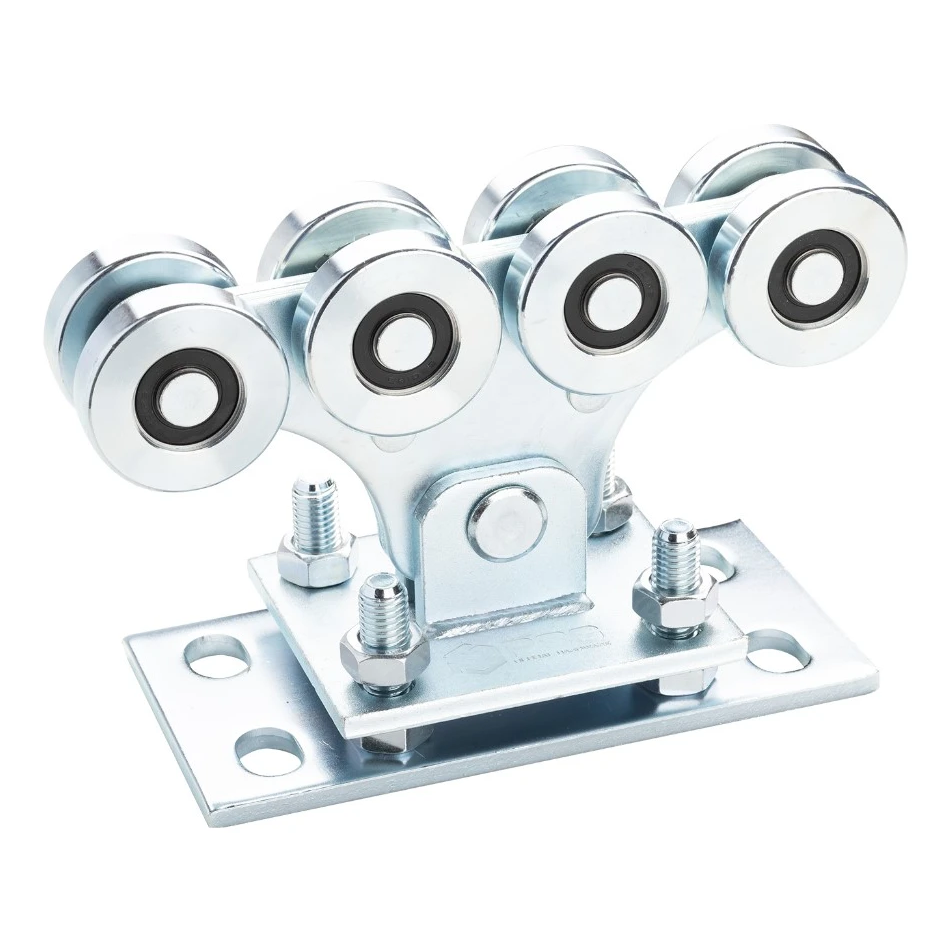 - Zweireihige Anordnung mit 8 Rollen — stabile Führung und gleichmäßige Lastverteilung des Torflügels