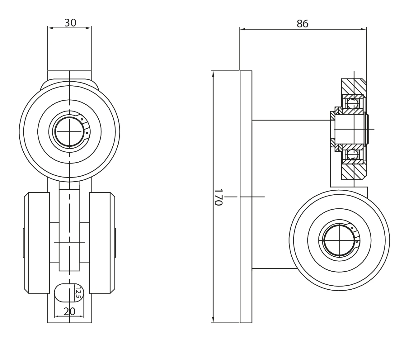 - Durchmesser der unteren Rollen (tragend): ø 60 mm