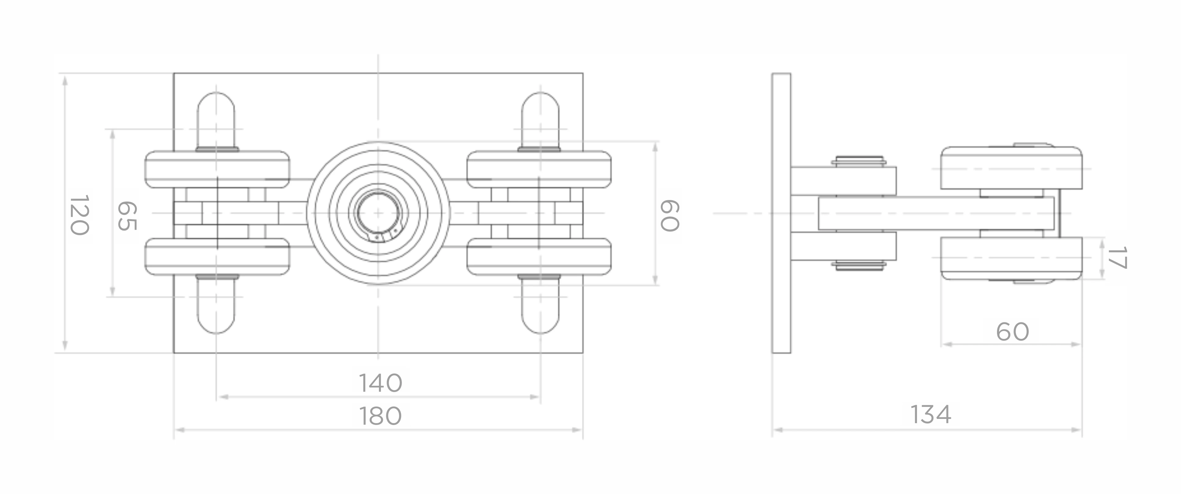 - Abstand der Rollenachse von der Mitte: 65 mm