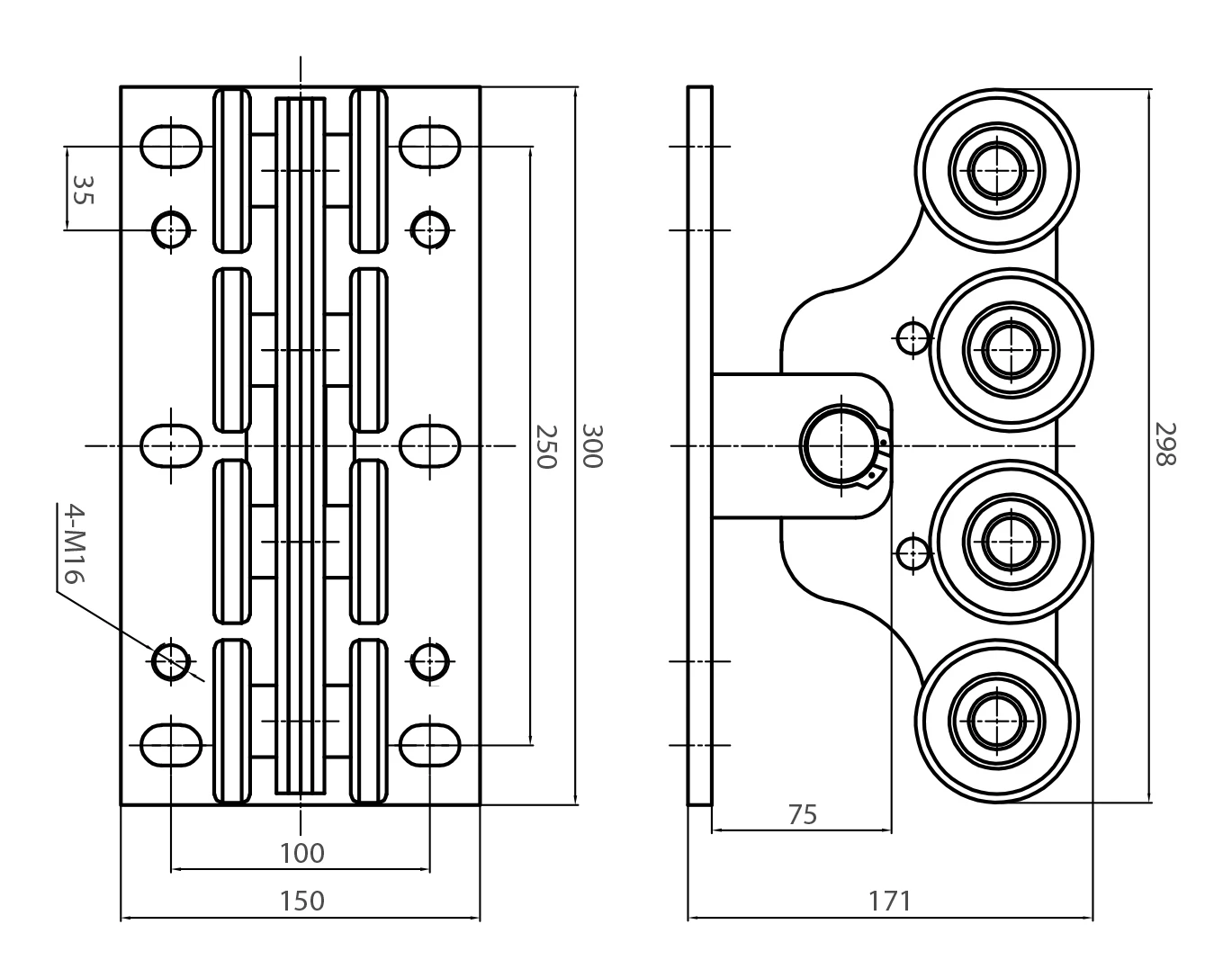 - Abmessungen der Grundplatte: 150 × 300 mm