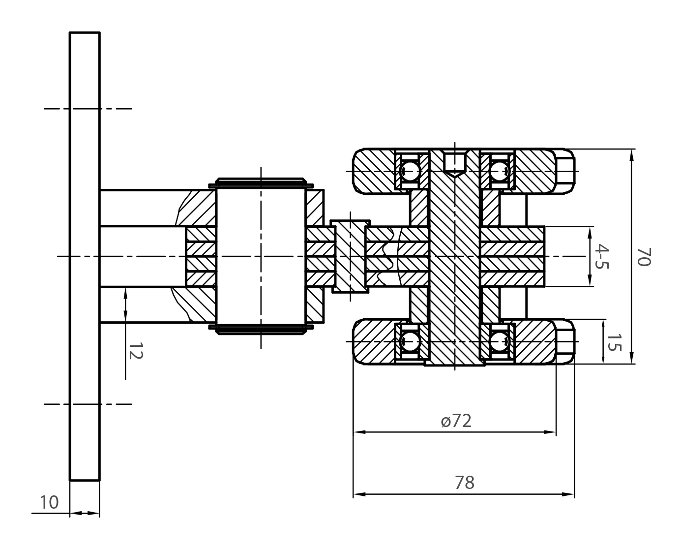 - Achsversatz der Rollen zur Grundplattenkante: 75 mm
