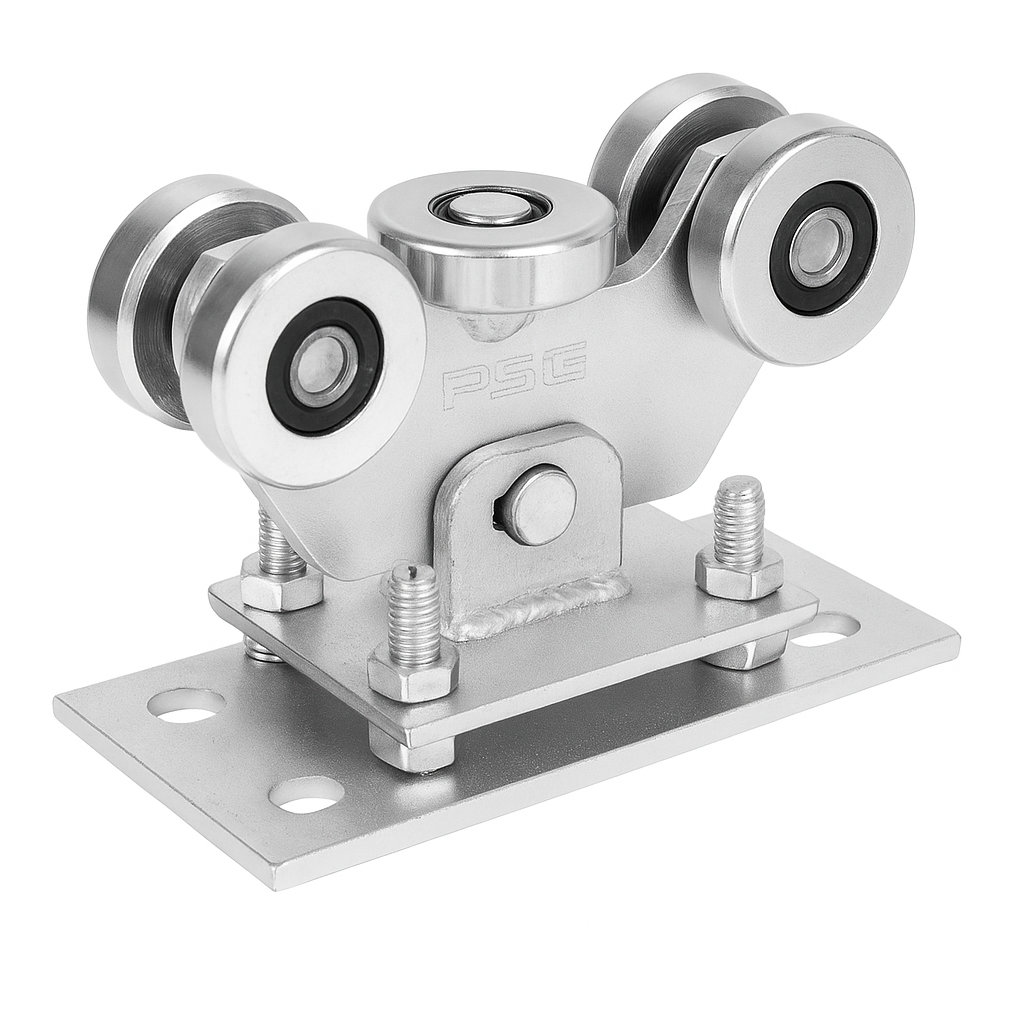 PSG Laufwagenpaket 60 PLUS mit Zubehör ist ein vollständiges, preislich attraktives Set an Laufelementen für freitragende Schiebetore, ausgelegt für die Schiene 60×60×4 mm. Das Set enthält zwei Laufwagen mit je 5 Rollen, eine Einlaufrolle mit Schutzabschluss sowie einen Einlaufhalter – alles, was ein Installationsbetrieb für die reibungslose Montage eines Schiebetors benötigt.