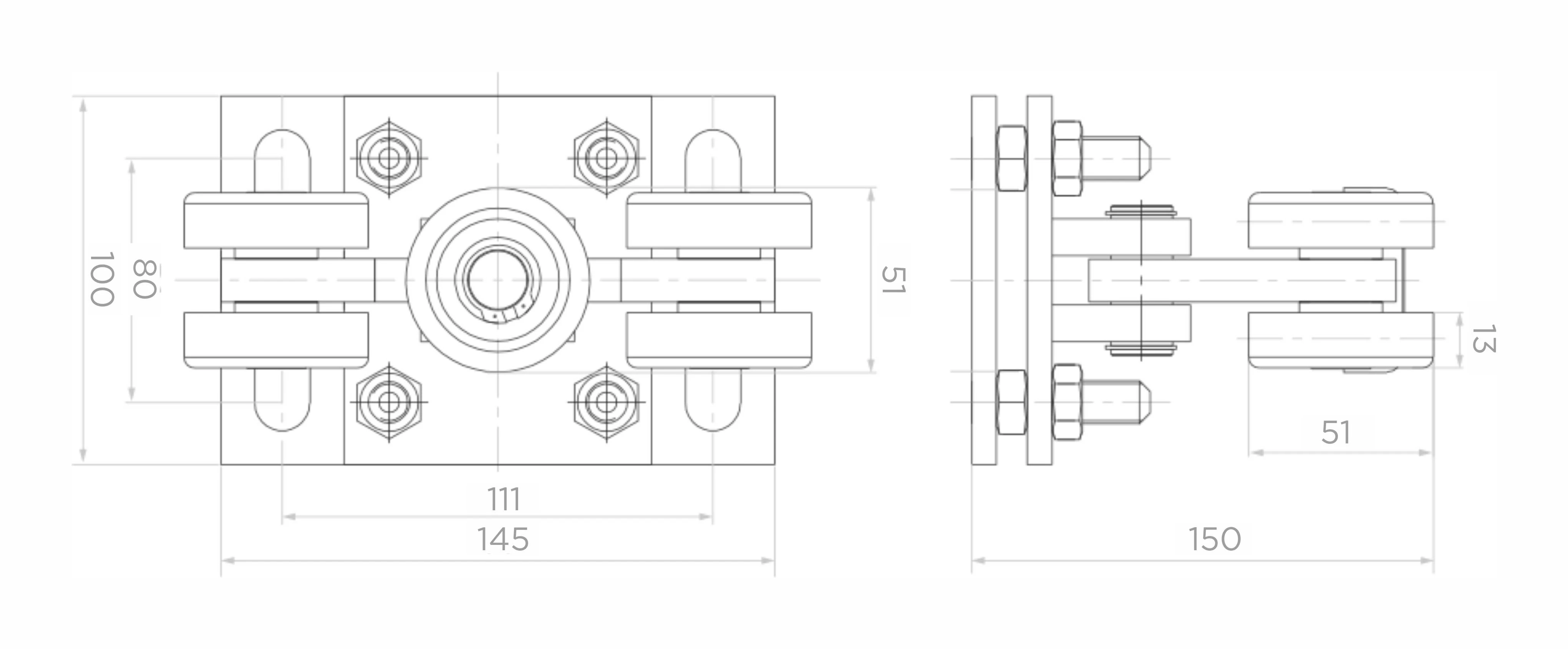 - Lochabstand der Montagebohrungen: 111 × 80 mm