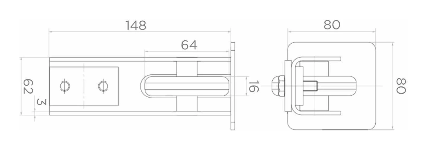 - Kompatible Schiene: 80 × 80 × 5 mm