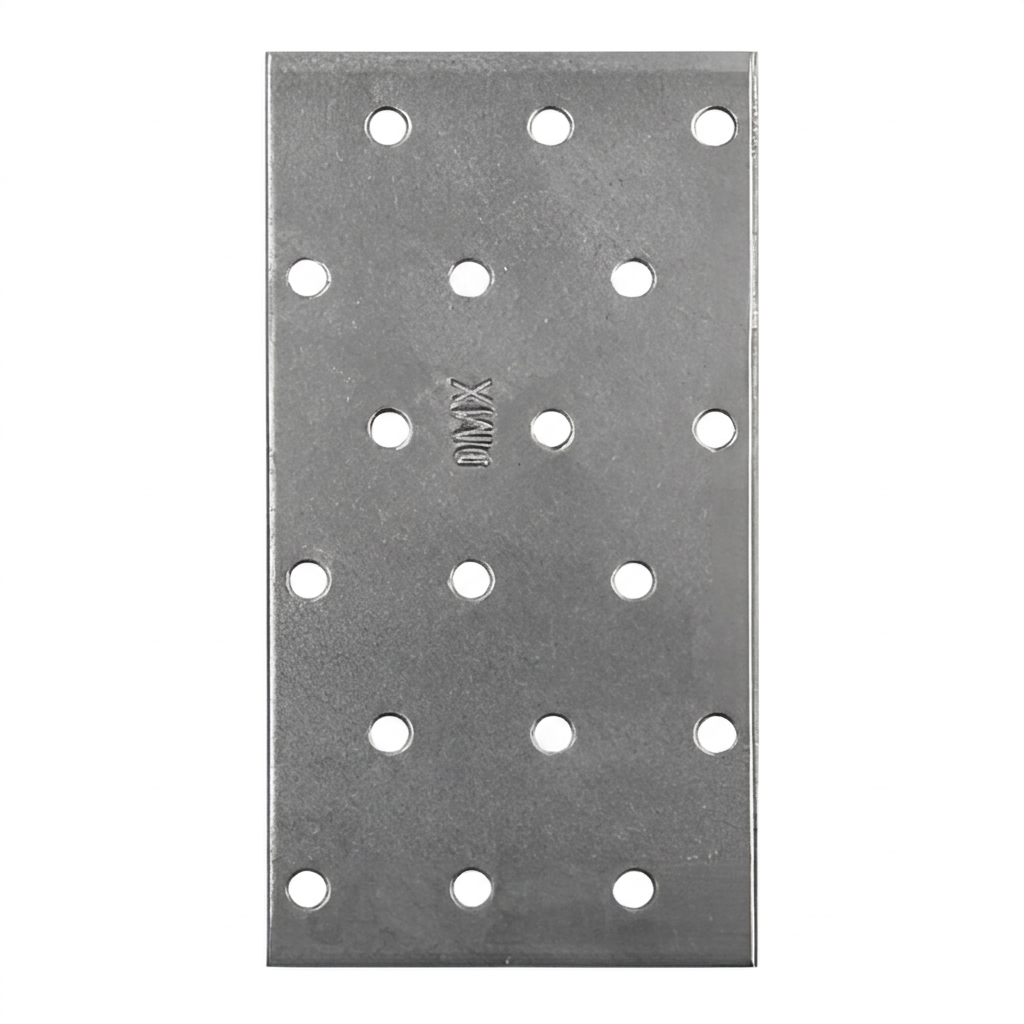 Die Lochplatte 60×120 mm ist ein robuster Zimmereiverbinder für professionelle Verbindungen in Holzkonstruktionen. Dank 18 Bohrungen mit einem Durchmesser von 5 mm, die gleichmäßig über die Blechoberfläche verteilt sind, ermöglicht sie sowohl einfache als auch komplexe Zimmereiknotenpunkte – überall dort, wo die Seitenflächen der zu verbindenden Elemente in einer Ebene liegen.