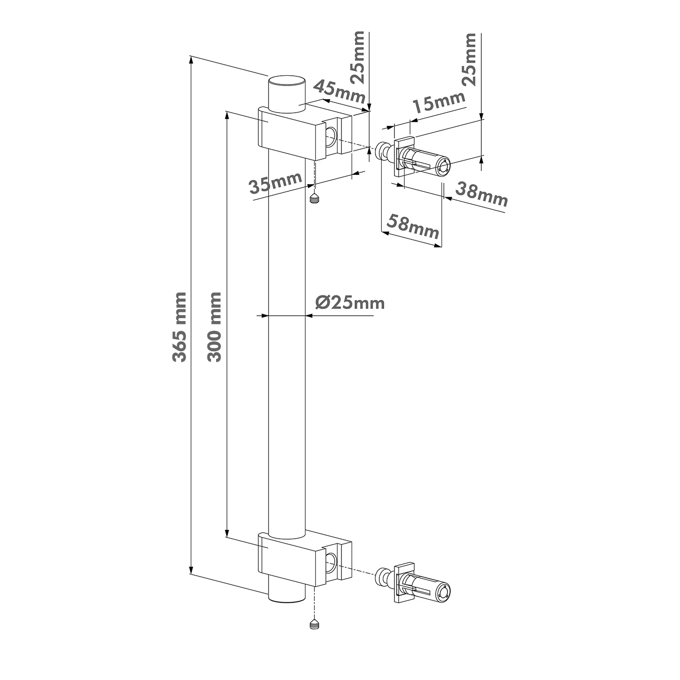 - Rohrdurchmesser des Griffs: Ø25 mm