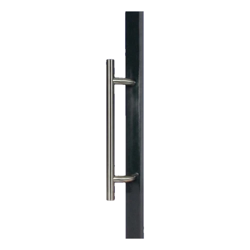 Der Griff wird mittels zweier Arme montiert, die mit Verankerungszapfen mit einem Durchmesser von Ø22 mm enden und in Bohrungen im Torprofil eingesetzt werden. Die Zapfen werden mit Klemmschrauben (sog. Madenschrauben) fixiert, was eine schnelle Montage ohne Schweißen ermöglicht. Der Befestigungsabstand beträgt 300 mm, und der Neigungswinkel der Arme von 60° gewährleistet einen ergonomischen Griff und eine ästhetische Optik am Profil.