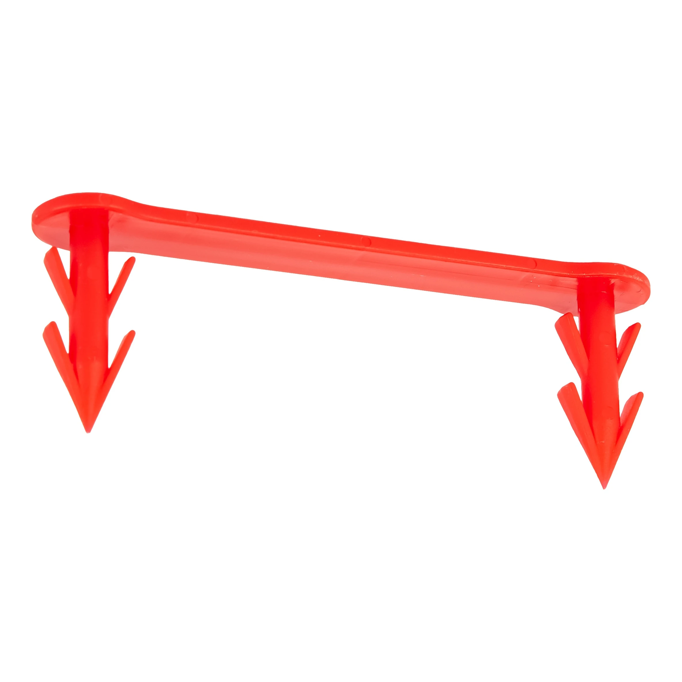 Material und Langlebigkeit – die Klammer besteht aus reinem Polypropylen in roter Farbe. Polypropylen gewährleistet Beständigkeit gegen Feuchtigkeit, im Estrich enthaltene Chemikalien sowie hohe Elastizität auch bei niedrigen Temperaturen.
