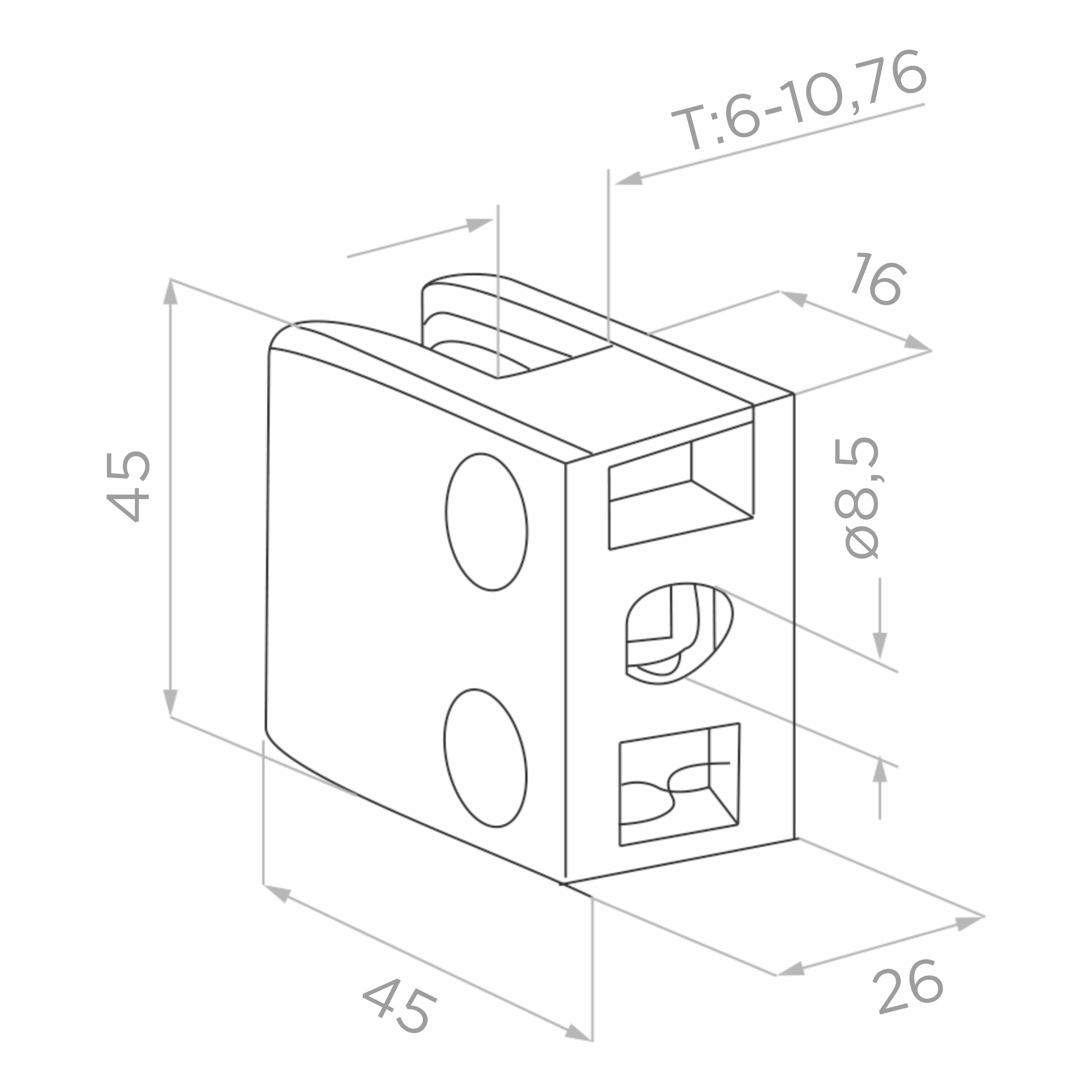 - Glashalter — 4 Stück (Abmessung 45×45 mm)