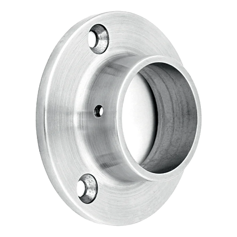 Der Flansch dient zur Befestigung des Balustradenlaufs an der Wand mittels M8-Gewinde. Die axiale Montageart gewährleistet eine stabile und ästhetische Verbindung des Rohrs mit dem Untergrund. Drei Montagelöcher im Flansch ermöglichen eine sichere Verschraubung des Elements, und ein seitliches Loch für eine Klemmschraube erlaubt eine zusätzliche Stabilisierung des Rohrs in der Aufnahme.
