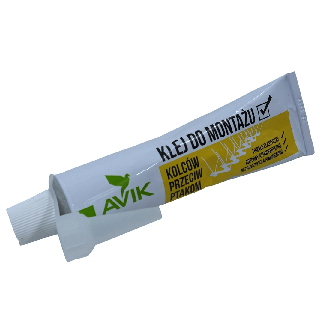 - Der Klebstoff ist für die Verklebung von Polycarbonat-Vogelstangensockeln vorgesehen. Nach dem Aushärten ist er geruchlos und dauerhaft flexibel und haftet perfekt auf einer Vielzahl von Oberflächen wie Beton, Metall, Polyester, Kunststoffen usw. Eine Tube Klebstoff ist ausreichend für die Installation von ca. 3 laufenden Metern Vogelspikes (9 Module).