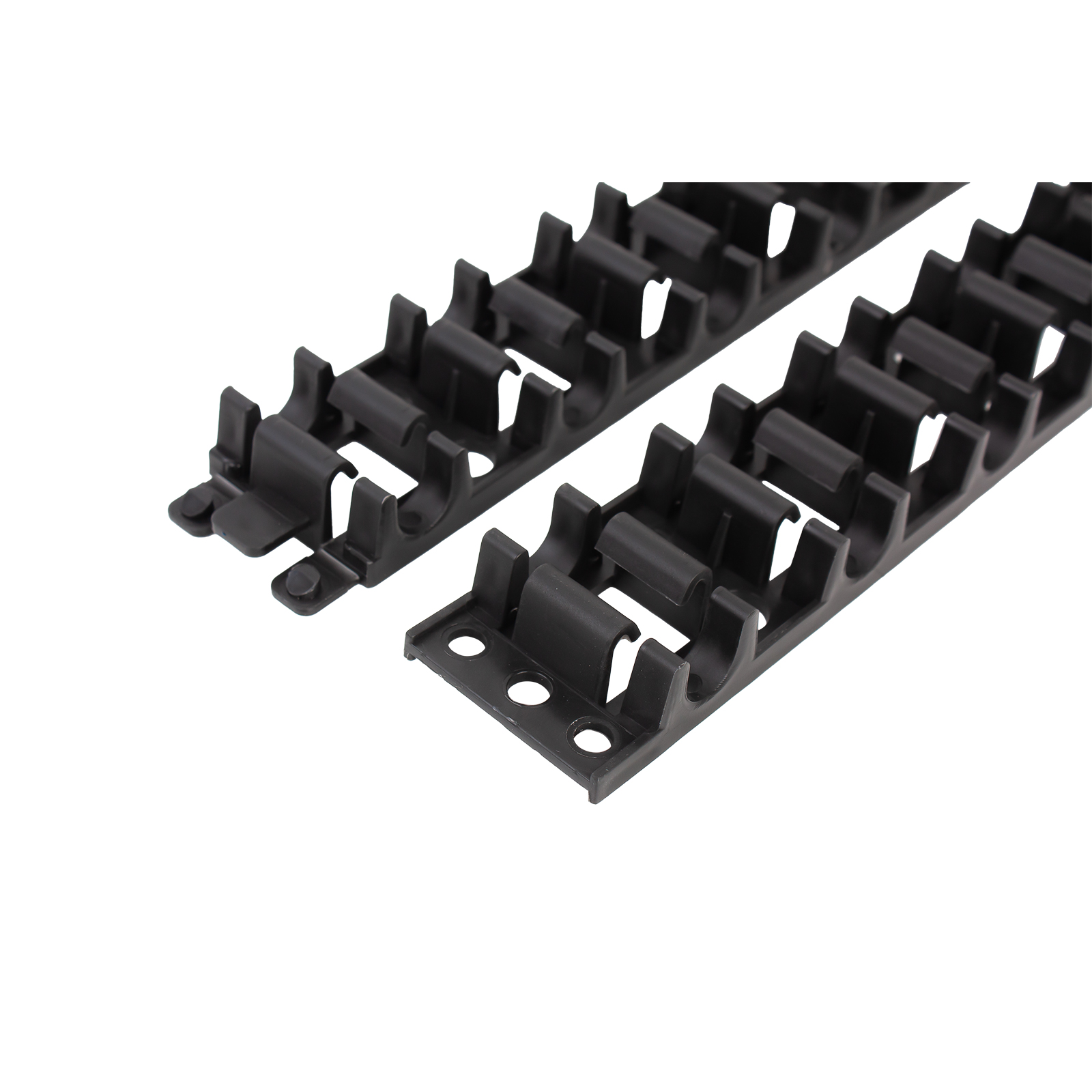 Wie funktioniert es? Das Rohr muss lediglich in die Schnapphalterung gedrückt werden — elastische Vorsprünge fixieren es in der richtigen Position ohne zusätzliche Clips. Der konstante Abstand der Halterungen garantiert gleichmäßige Abstände zwischen den Schleifen, was sich in eine gleichmäßige Wärmeverteilung über die gesamte Bodenfläche übersetzt.