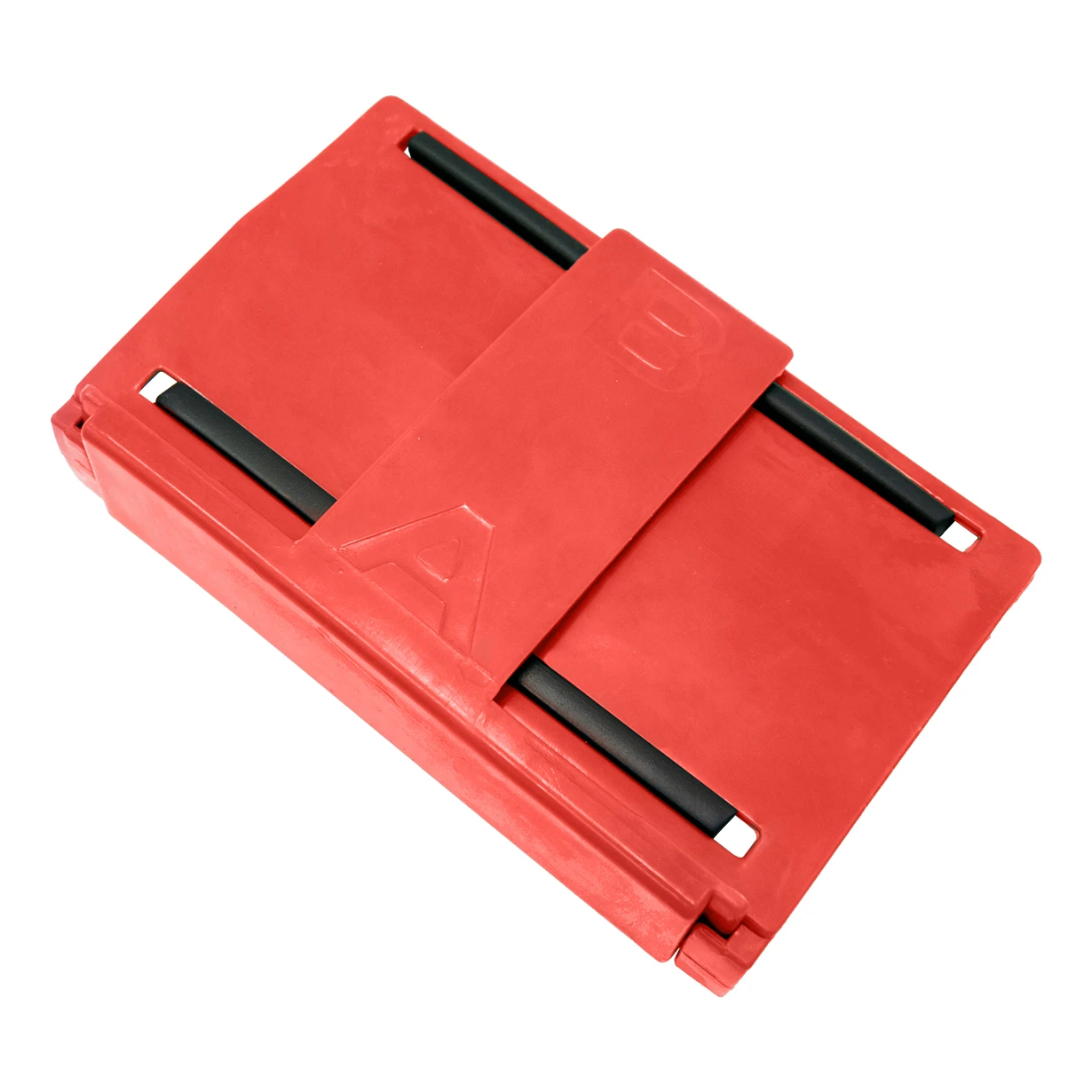 Das Set umfasst 8 komplette Montageeinheiten aus Kunststoff. Jede Einheit besteht aus mehreren aufeinander abgestimmten Teilen — einem Hauptbefestigungsblock mit Gummieinsatz, zwei Distanzleisten sowie einer Abdeckkappe. Die mit den Symbolen A und B gekennzeichneten Elemente erleichtern die korrekte Ausrichtung bei der Montage. Der Befestigungsblock verfügt über eine scharnierseitig öffnende Konstruktion, die ein komfortables Einsetzen der Scheibe und ein präzises Anpressen mittels Gummieinsätzen ermöglicht.