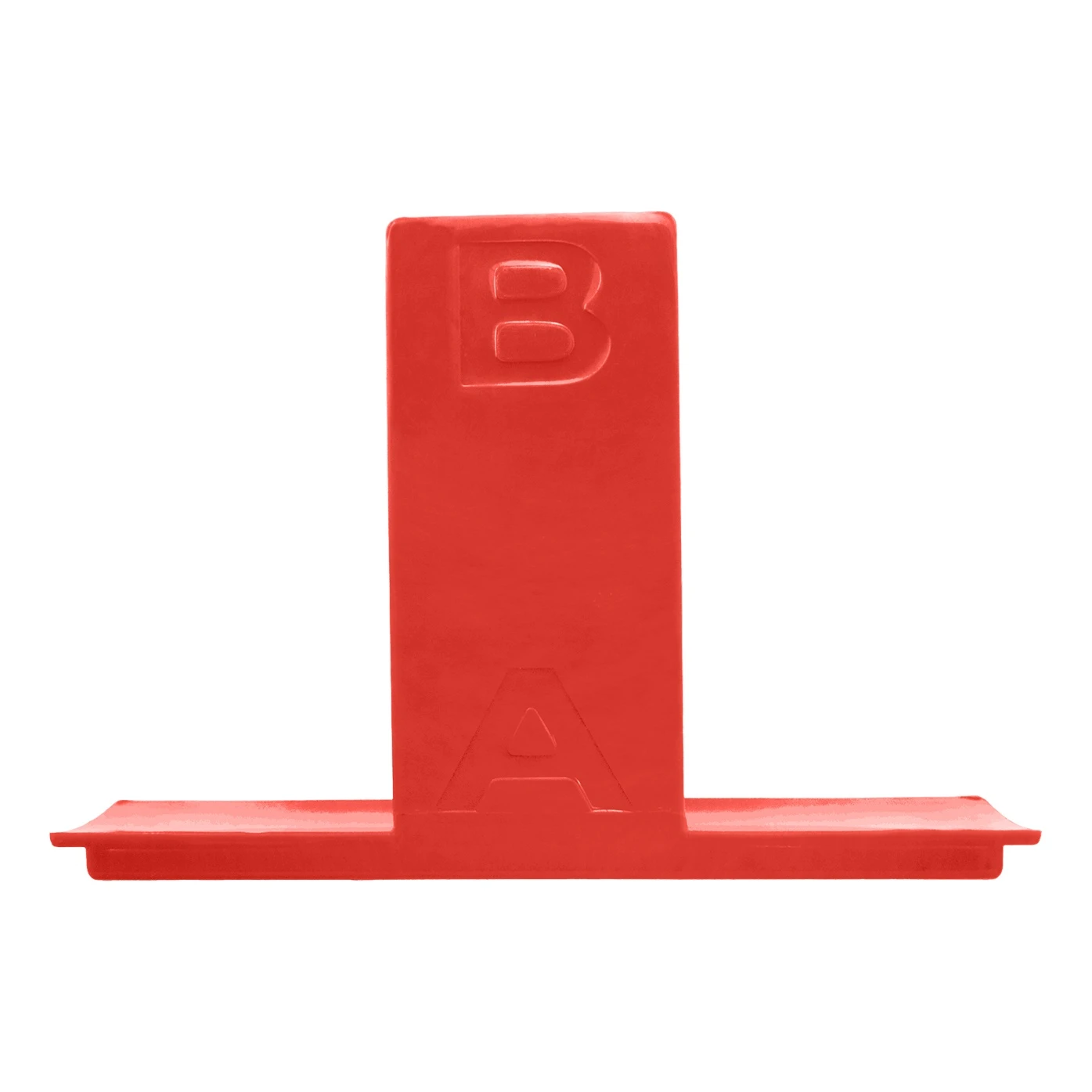 Die auf dem Körper des Montageelements eingeprägten Markierungen A und B ermöglichen eine schnelle Identifikation der korrekten Ausrichtung während der Installation. Die Seitenleisten mit mehreren Montagebohrungen erlauben die Anpassung an verschiedene Profilkonfigurationen, und ein kleiner Sicherungsklips fixiert das Gesamtsystem in der optimalen Position. Die Elemente aus ABS-Kunststoff sind formstabil und gewährleisten eine dauerhafte Befestigung über die gesamte Nutzungsdauer des Geländers.
