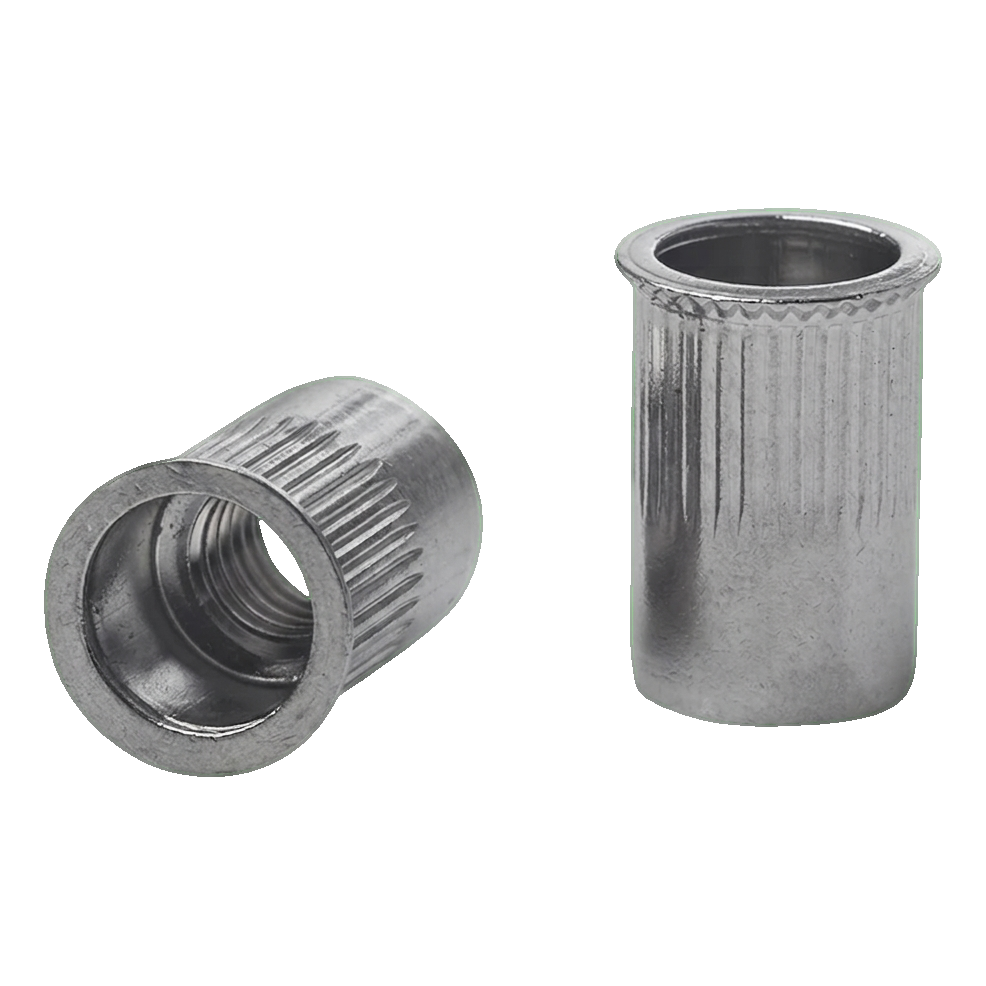 Durchgangs-Nietmutter M6 A2 EDELSTAHL 304 – reduzierter konischer Flansch, gerändelt