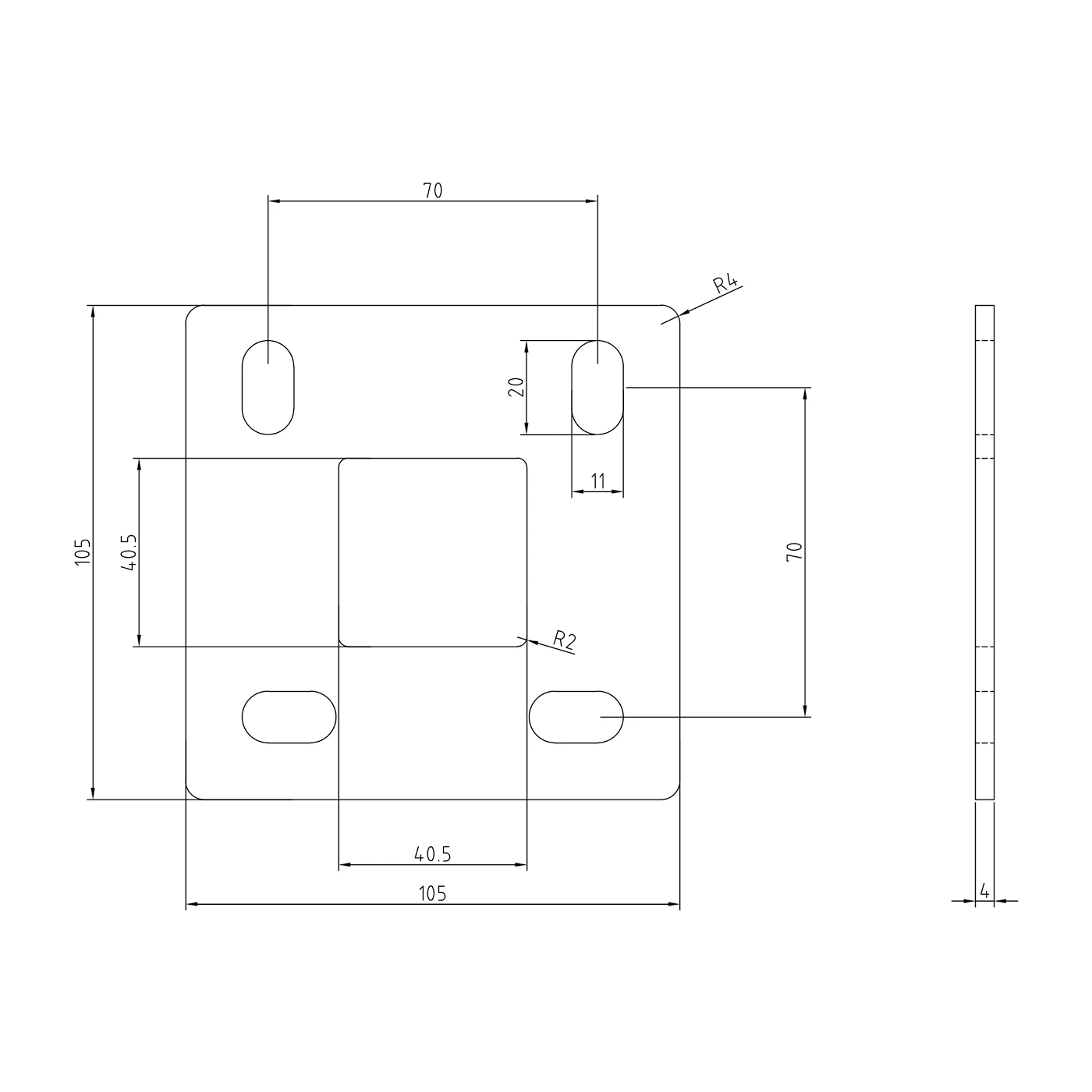 - Zentrale Öffnung für Profil: 40,5×40,5 mm
