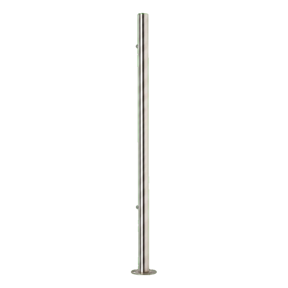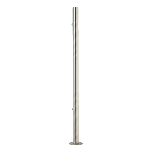 Der Endpfosten spielt eine Schlüsselrolle bei der Stabilisierung und ästhetischen Vollendung der Geländerkonstruktion. Die angeschweißte Grundplatte mit einem Durchmesser von ø100 mm gewährleistet eine sichere Bodenbefestigung und garantiert Langlebigkeit und Sicherheit der gesamten Installation. Die satinierte Oberfläche verleiht modernen Räumen einen eleganten Charakter und harmoniert perfekt mit verschiedenen Architekturstilen — sowohl in Wohn- als auch in Gewerbeobjekten.