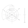 - Montagebohrungen: 3 Langlöcher alle 120° angeordnet