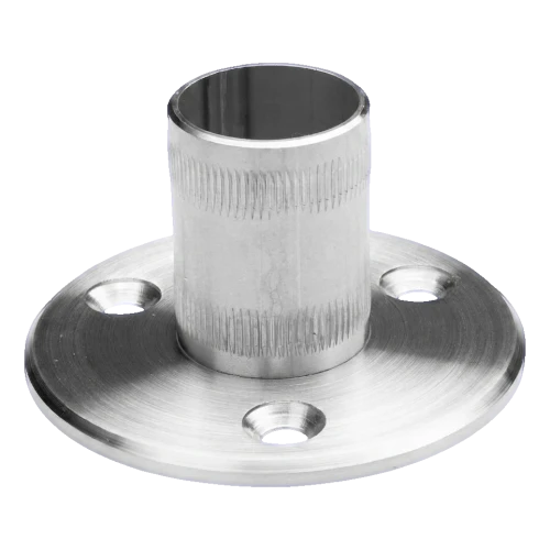 Die Grundplatte ist ein unverzichtbares Konstruktionselement, das mit einer speziellen Abdeckkappe verdeckt werden kann, welche die Ästhetik des Geländers durch Verdeckung der Montageteile verbessert. Durch präzise Ausführung und Anpassung an Rohre mit einem Durchmesser von 42,4 mm arbeitet das Element perfekt mit den beliebtesten Edelstahl-Geländersystemen zusammen.