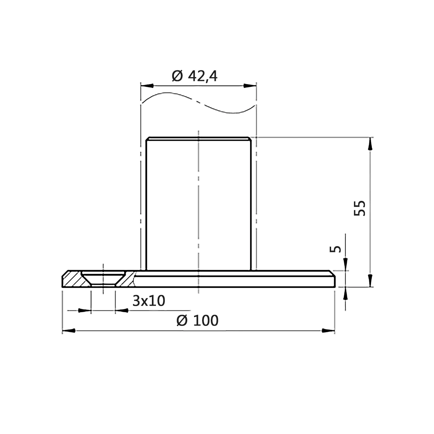 - Grundplattendurchmesser (Flansch): Ø 100 mm