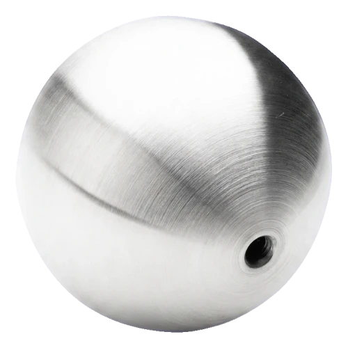 Die Hohlkonstruktion der Kugel gewährleistet geringes Gewicht (0,44 kg) bei Beibehaltung von Steifigkeit und Langlebigkeit. Die Wandstärke von 2 mm garantiert ausreichende mechanische Beständigkeit für Geländeranwendungen und hält gleichzeitig die geringe Masse des Elements aufrecht — was bei großen Bestellungen und beim Transport von Bedeutung ist.