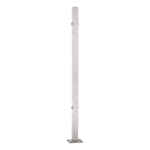 Edelstahl AISI 304 ist in erster Linie für den Einsatz in Innenräumen bestimmt. Bei regelmäßiger Reinigung und Verwendung geeigneter Schutzmittel kann der Pfosten erfolgreich auch im Außenbereich montiert werden — ausgenommen Schwimmbad-, Pool- und Meeresumgebungen mit direkter Salzwassereinwirkung. Das satinierte Finish erleichtert die tägliche Wartung und ist weniger anfällig für sichtbare Verschmutzungen als polierte Oberflächen.