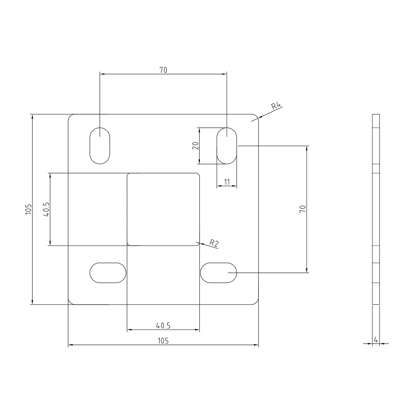 - Grundplatte: 105×105×4 mm