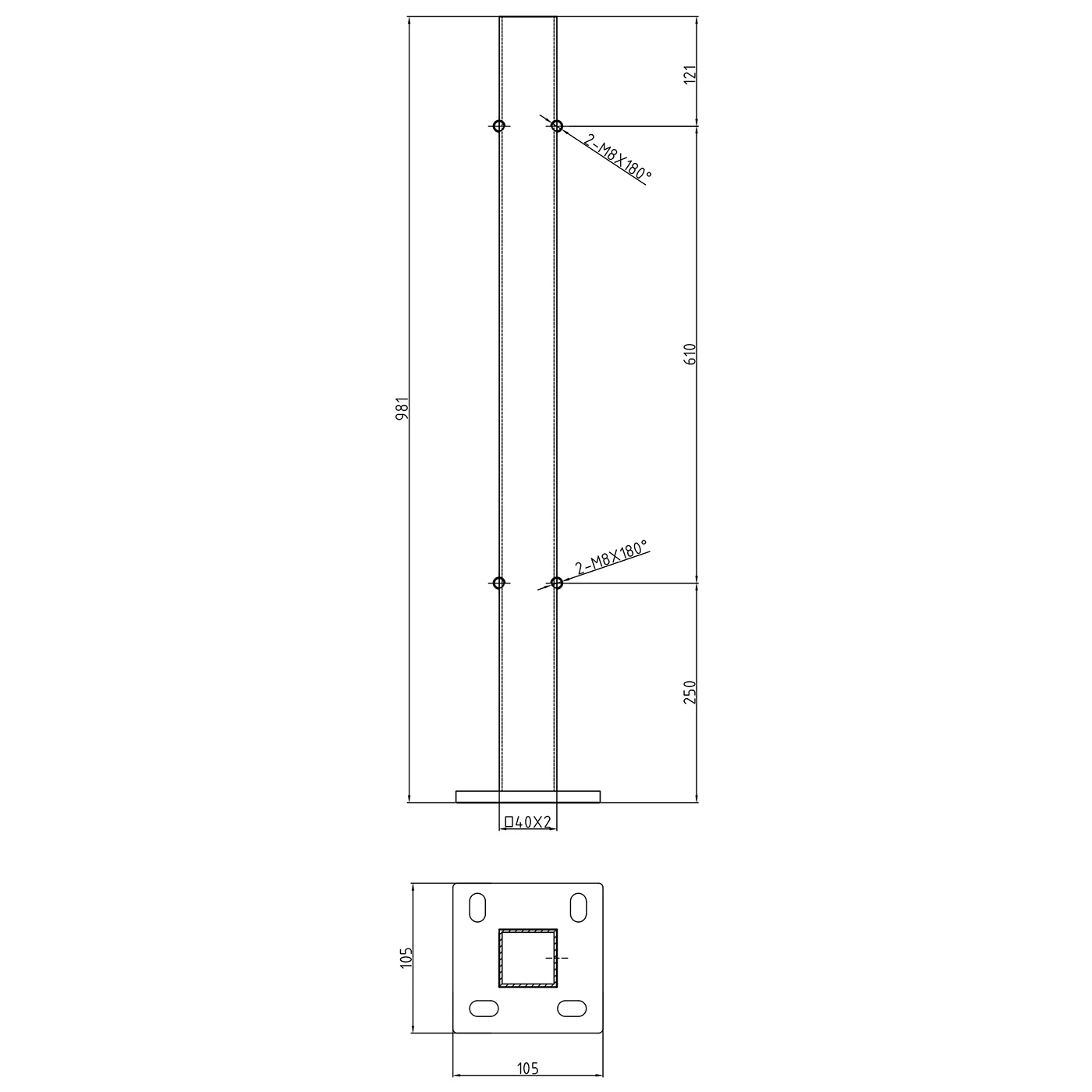 - Gesamthöhe des Pfostens: 981 mm