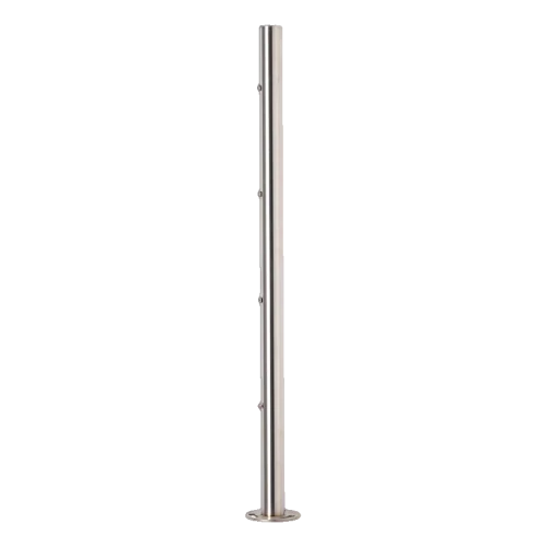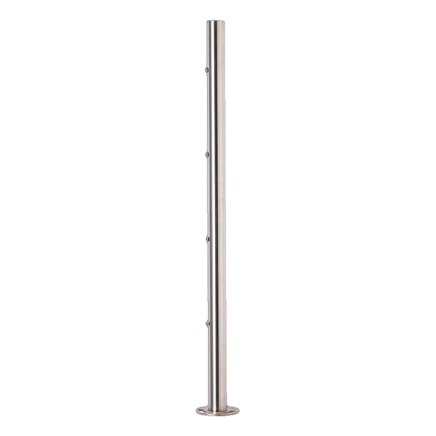 Edelstahl AISI 304 gewährleistet hohe Korrosions- und Witterungsbeständigkeit, wodurch sich der Pfosten sowohl im Innenbereich als auch im Außenbereich bewährt – auf Balkonen, Terrassen oder in Treppenhäusern. Die satinierte Oberflächenveredelung verleiht dem Produkt ein modernes, mattes Aussehen, das sich perfekt mit anderen Elementen von Balustradensystemen kombinieren lässt.