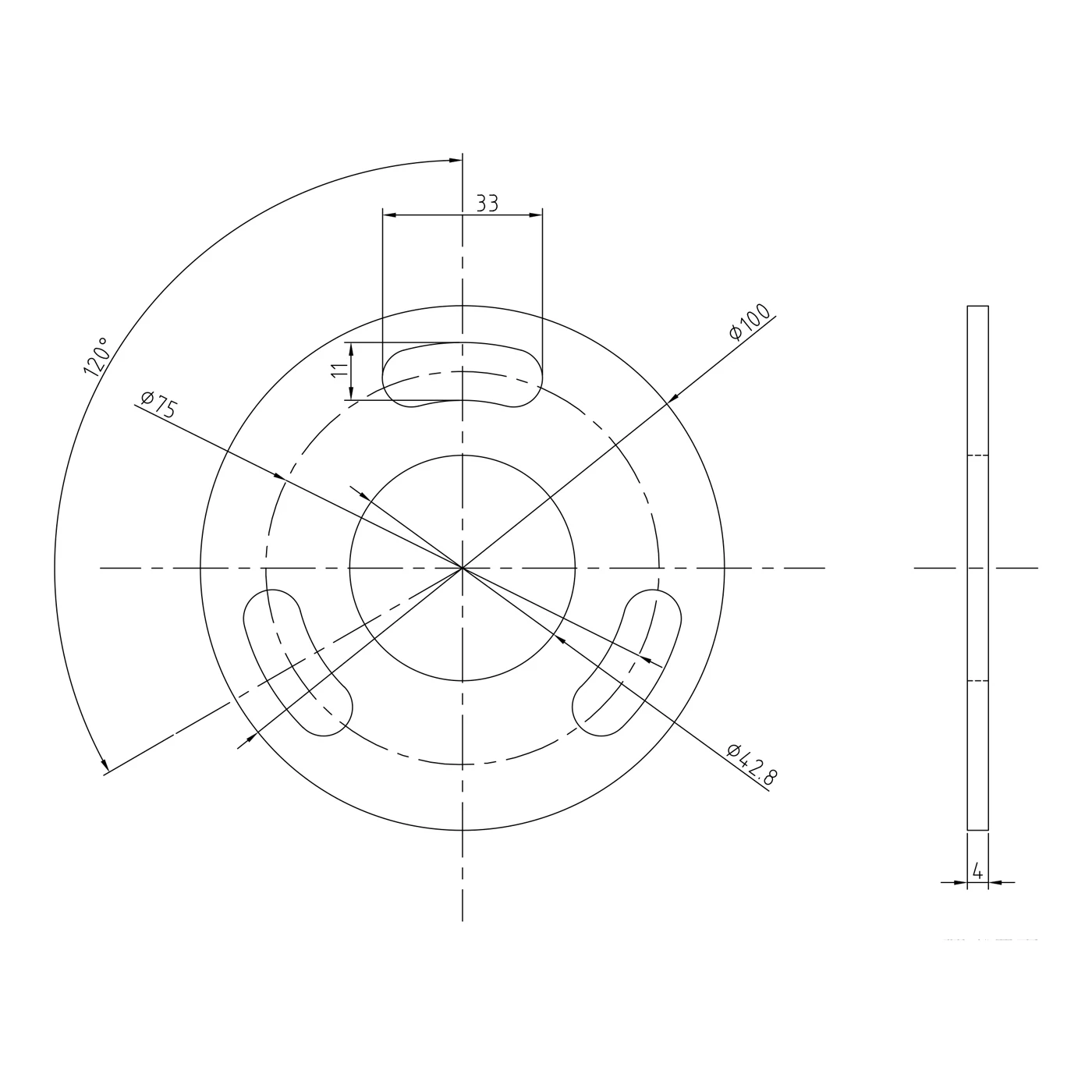 - Abmessungen der Langlöcher: 33 × 11 mm