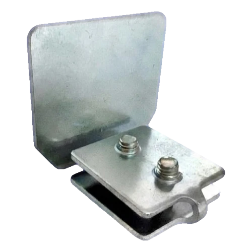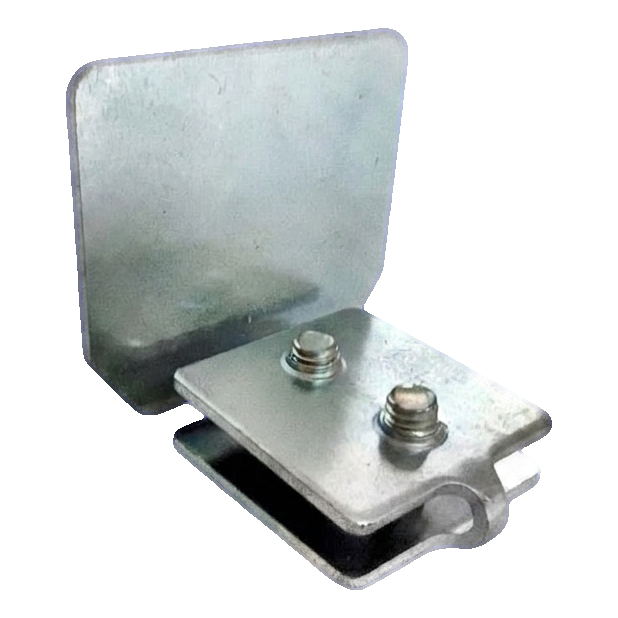Die Konstruktion des Abschlusses besteht aus einem Stirnblech (Anschlagblech) sowie einem Spannmechanismus in U-Form mit zwei Schrauben, der die untere Wand des Schienenprofils sicher umfasst. Die Montage erfolgt durch Aufschieben des Elements auf das Schienenende und Anziehen der Schrauben — schnell, einfach und ohne Schweißen.