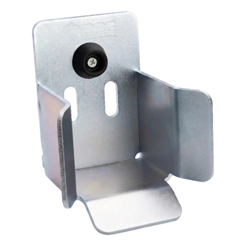 Der Halter ist aus verzinktem Stahl gefertigt, was hohe Korrosionsbeständigkeit und langjährige Haltbarkeit auch unter anspruchsvollen Witterungsbedingungen garantiert. Langlöcher ("Bohnenform") ermöglichen eine präzise Justierung der Halterposition am Pfosten und erleichtern die Torausrichtung in der Führungsachse.