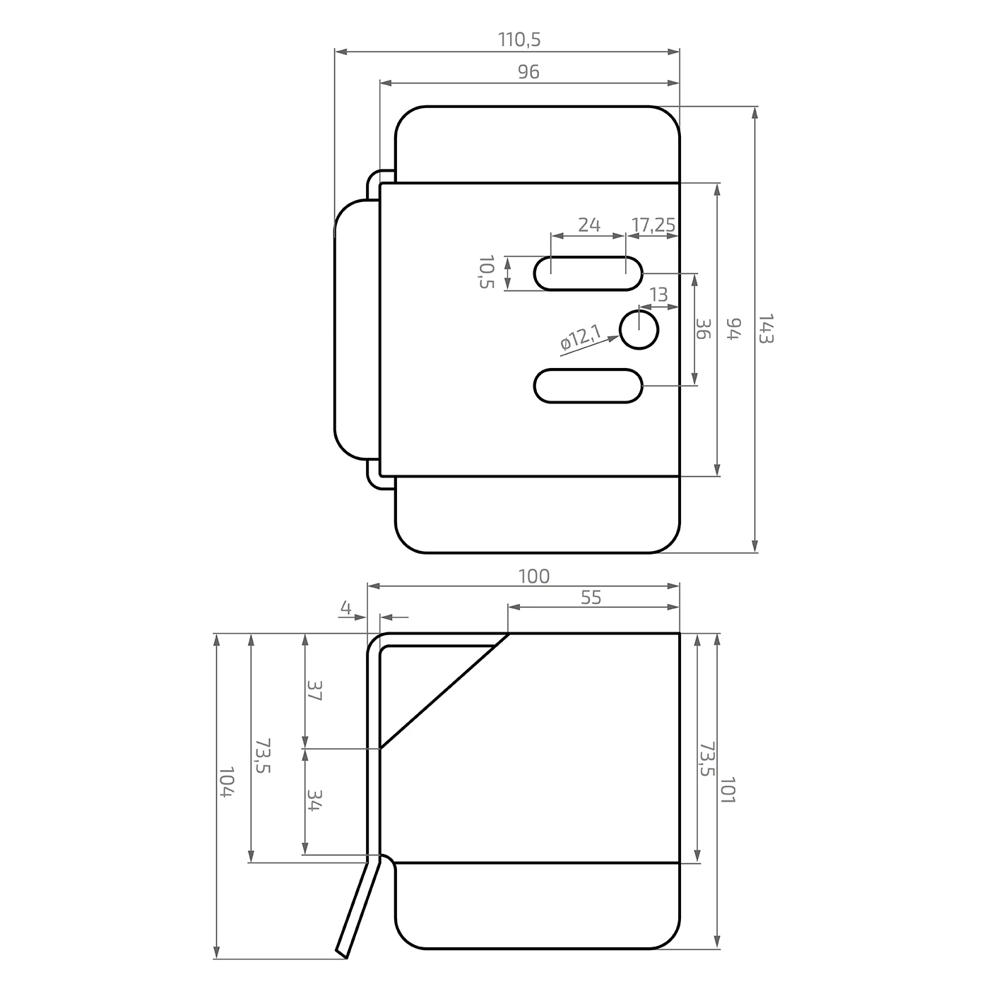 - Langlöcher: 24 × 10,5 mm – 2 Stück
