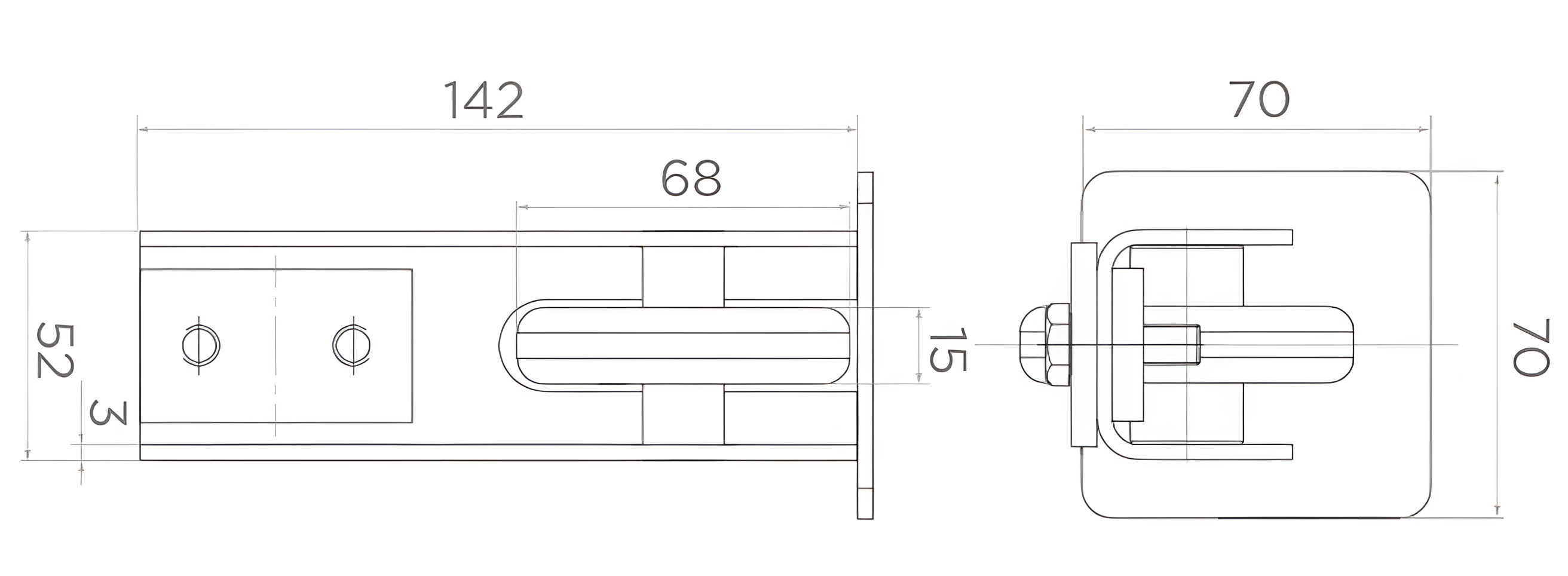 - Breite des Körpers (in die Schiene einzuschiebender Teil): 52 mm