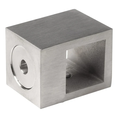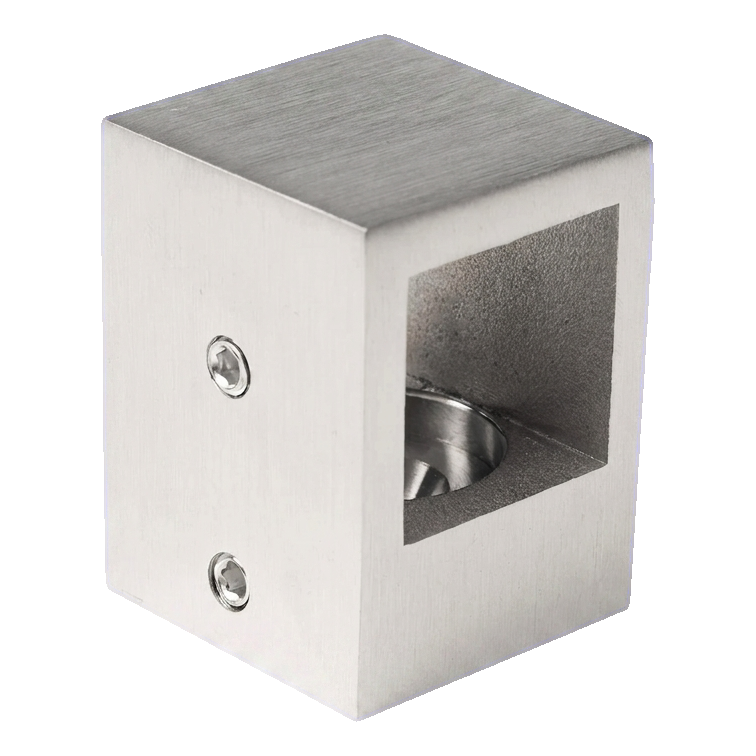 Der Halter wird im flachen System montiert — direkt an der flachen Oberfläche mittels Schraube mit M6-Gewinde. Die einfache Montage führt zu kürzerer Installationszeit, was besonders wichtig bei der Realisierung größerer Geländerprojekte ist. Der Stab oder das Profil 20×20 mm läuft durch die Durchgangsbohrung mit einem Durchmesser von 21,2 mm, was ausreichendes Montagespiel und einfache Positionierung der Elemente gewährleistet.