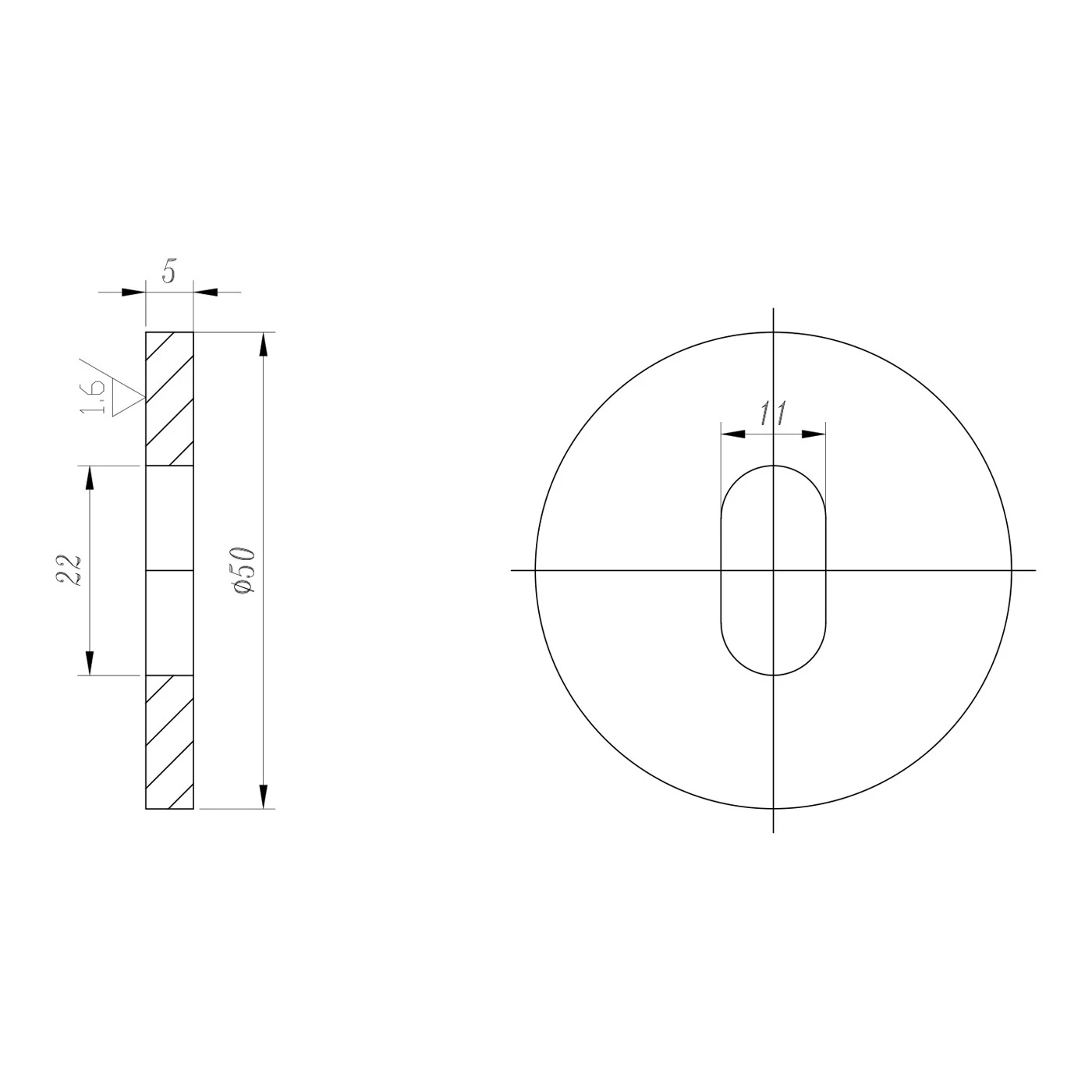 - Montageloch (Langloch): 22 × 11 mm
