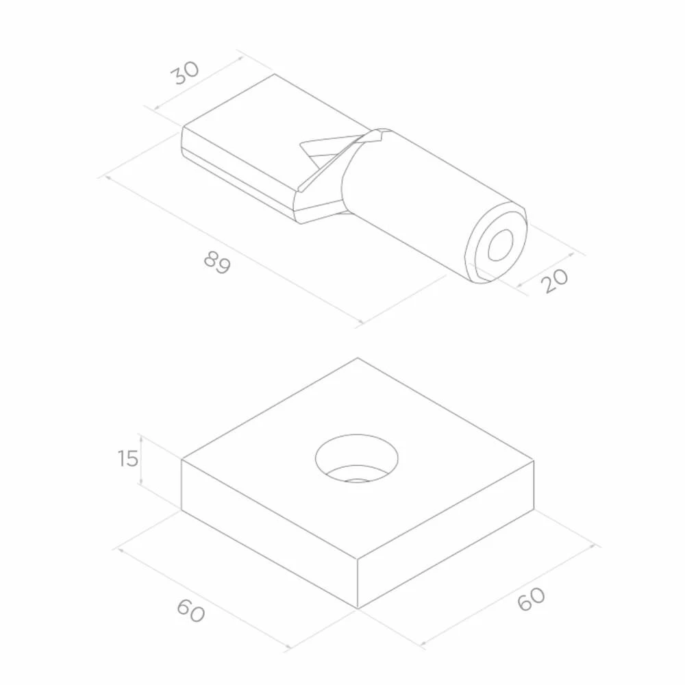 - Abmessungen der Montageplatte: 60 × 60 mm