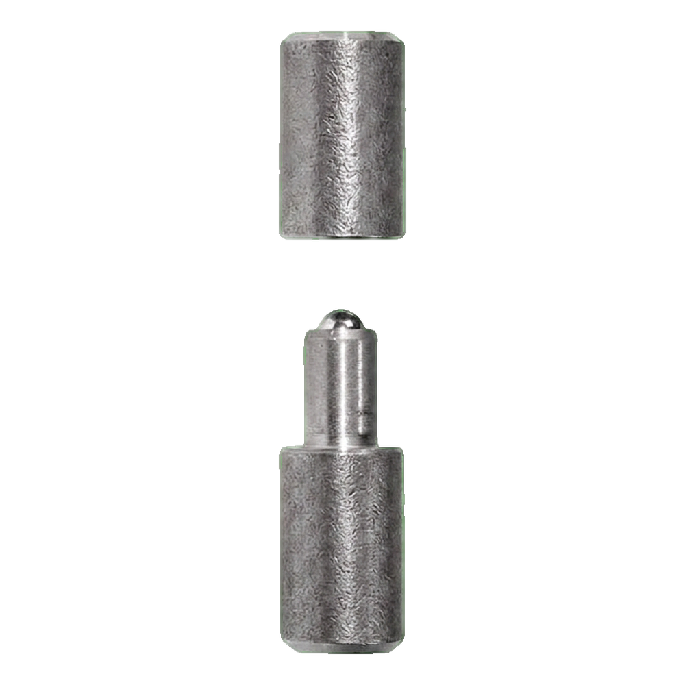Das Scharnier besteht aus zwei Elementen: der oberen Hülse (weiblich) und dem Zapfen mit Kugel (männlich), die nach der Montage einen kompakten, sicheren Drehpunkt bilden. Das kugelförmige Ende des Zapfens minimiert die Reibung und erleichtert das Aufhängen des Flügels – es genügt, die Hülse auf den Zapfen zu schieben. Diese Lösung wird besonders von Montageteams geschätzt, da sie die Installationszeit für Tore und Pforten erheblich verkürzt.
