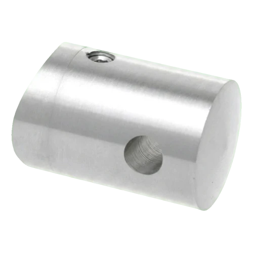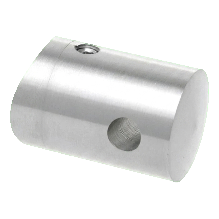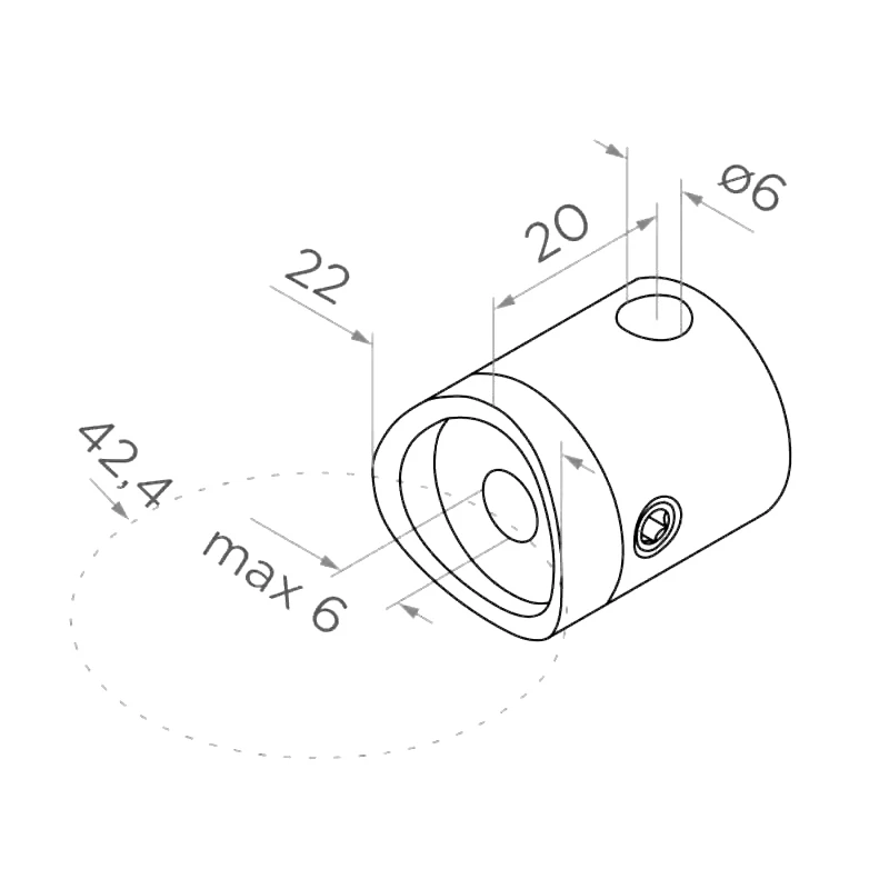 Durchgangsbeschlag für Seil ø 6 mm bestimmt zur Montage auf Pfosten aus Rohr mit Durchmesser 42,4 mm. Kompaktes Element für Edelstahl-Geländer mit Seilfüllung — ermöglicht einfache Durchführung des Seils durch den Pfosten und sichere Befestigung mittels Klemmschraube.