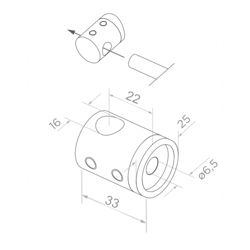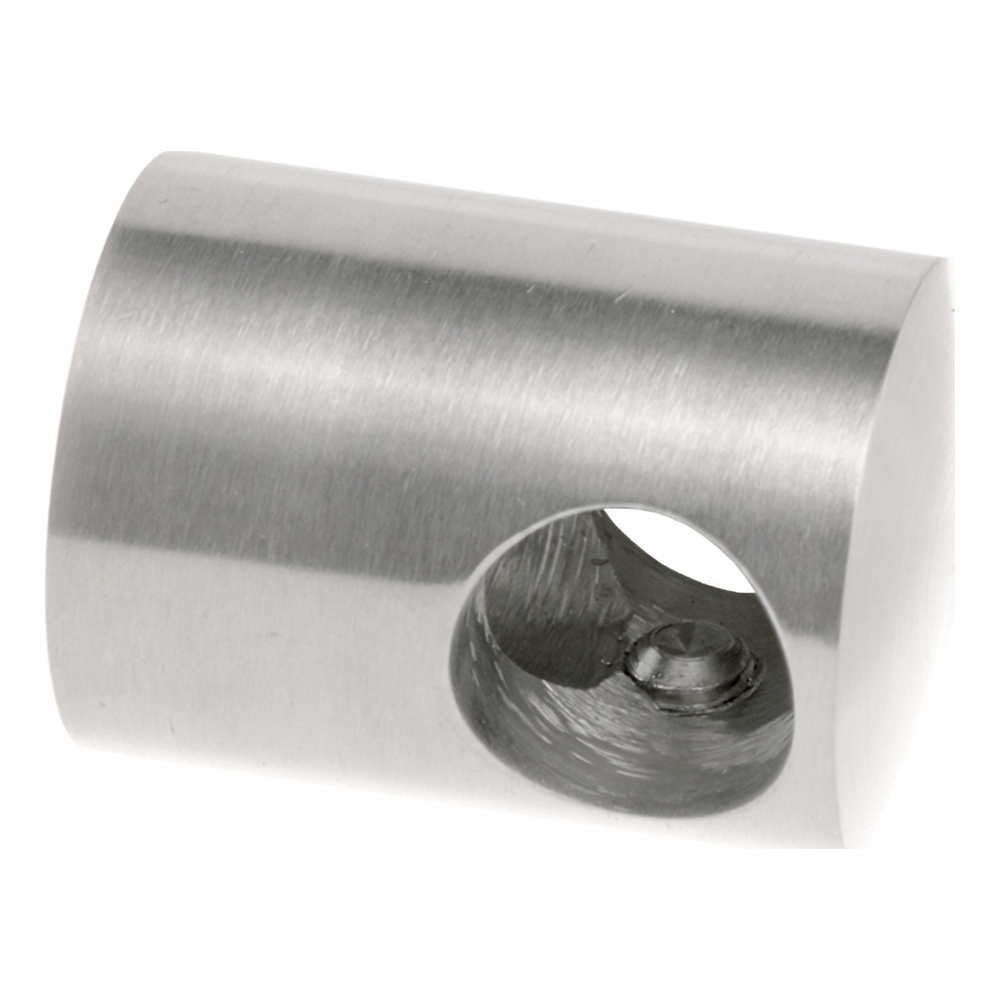 Hergestellt aus widerstandsfähigem Edelstahl AISI 304 mit satinierter Oberfläche, korrosions- und witterungsbeständig. Die zylindrische Form mit Durchgangsbohrung für den Stab sowie Montagebohrung in der Grundplatte ermöglicht eine schnelle und sichere Montage an der Oberfläche. Seitliche Klemmschrauben erlauben die Fixierung des Stabes im Halter ohne zusätzliche Elemente.