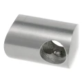 Die Halterung fungiert als Verbindungselement zwischen Geländerstütze und Füllstäben — sie sorgt für Stabilität und Steifigkeit der gesamten Füllkonstruktion. Die profilierte (sattelförmige) Basis eliminiert die Notwendigkeit präzisen Fräsens und ermöglicht eine schnelle Positionierung am Rohr. Die zentrale Bohrung ø 6,5 mm dient zur Befestigung der Halterung am Tragerohr mittels Schraube, während die seitliche Durchgangsbohrung ø 10 mm den Füllstab oder -rohr führt.