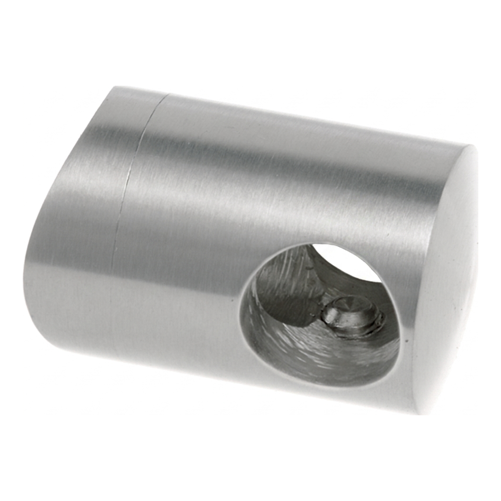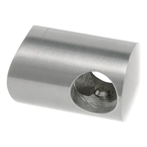 Aus Edelstahl AISI 304 mit satiniertem Finish gefertigt, harmoniert die Halterung perfekt mit anderen Elementen des Geländersystems 42,4 mm. Die zweiteilige Konstruktion (Korpus + Aufsatz) ermöglicht eine schnelle Montage — einfach den Stab durch die Durchgangsbohrung einführen und das Element mit der Zentralschraube festziehen.