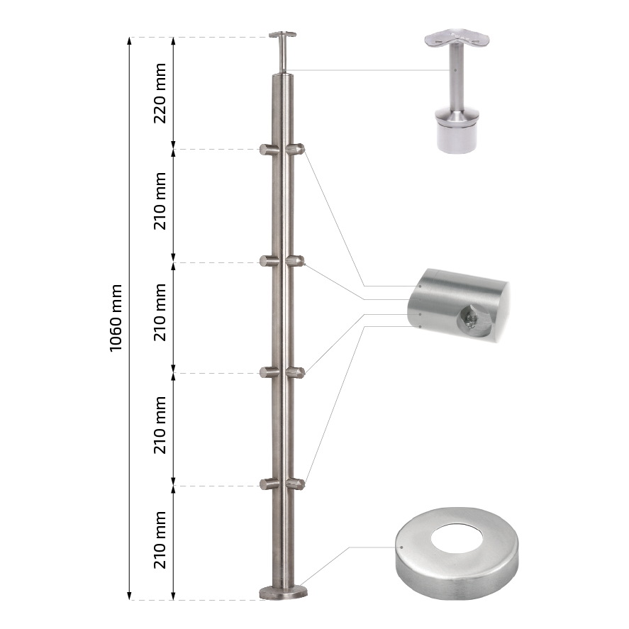 - Eckpfosten für Balustrade ø42,4 × 1060 mm – 1 Stk.