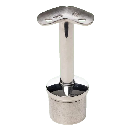 Die Stütze ist vollständig kompatibel mit dem Balustradensystem 42,4 mm — verbindet sich direkt mit Standardpfosten und Handläufen in dieser Dimension. Bestimmt für Innen- und Außenanwendungen unter Überdachung, überall dort, wo eine eckige (winklige) Verbindung des Handlaufs mit dem Pfosten erforderlich ist.