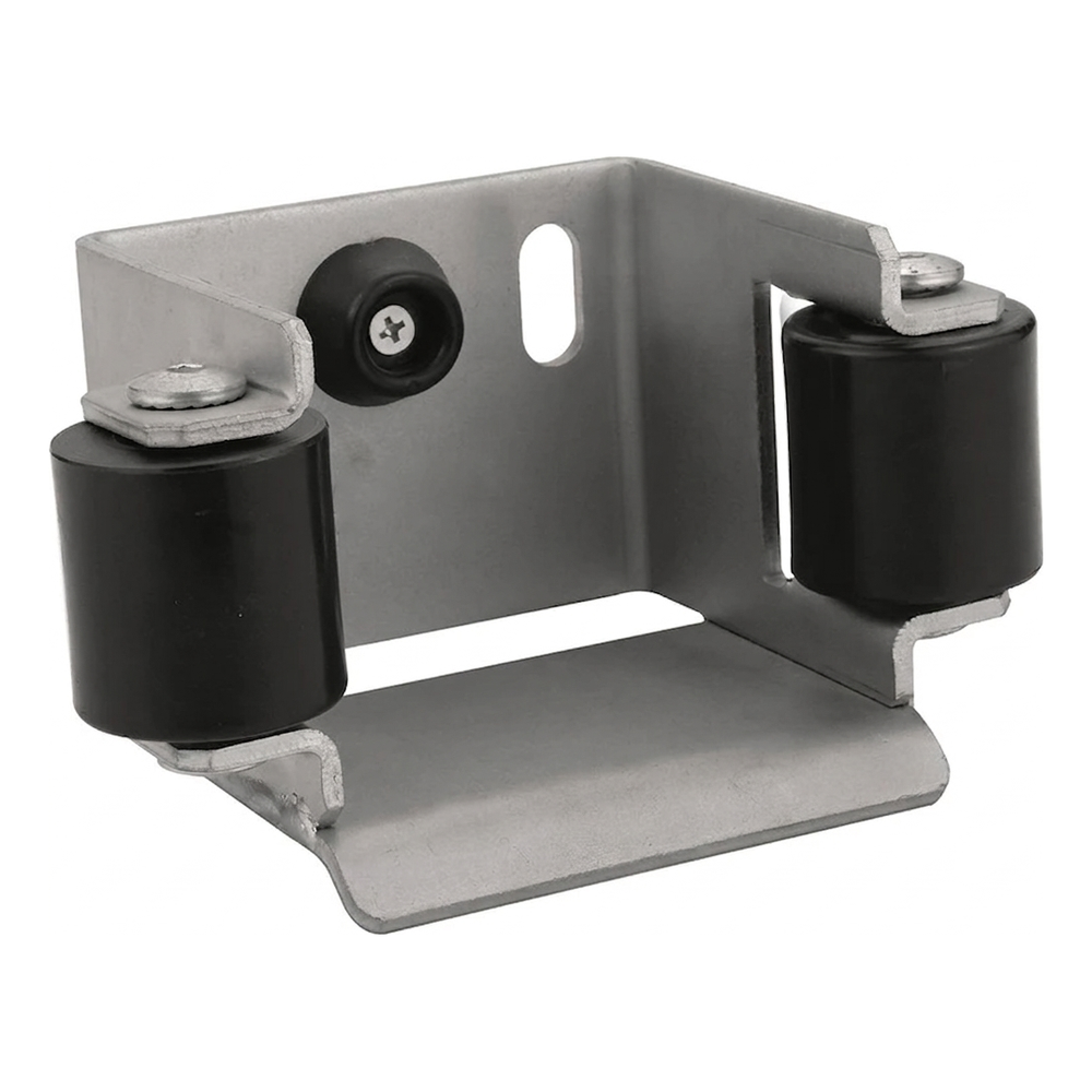Die Einfahrhilfe ist kompatibel mit Führungsschienen mit Querschnitt 80×80 mm sowie 70×70 mm. Zwei Führungsrollen aus Kunststoff gewährleisten einen leisen und geschmeidigen Lauf des Tors und minimieren Reibung sowie Verschleiß der Schiene. An der Rückwand der Einfahrhilfe befinden sich zwei Montagelöcher (Langlöcher), die eine präzise Positionsregulierung ermöglichen, und ein eingebauter Gummipuffer dämpft den Aufprall des Torflügels in geschlossener Position.